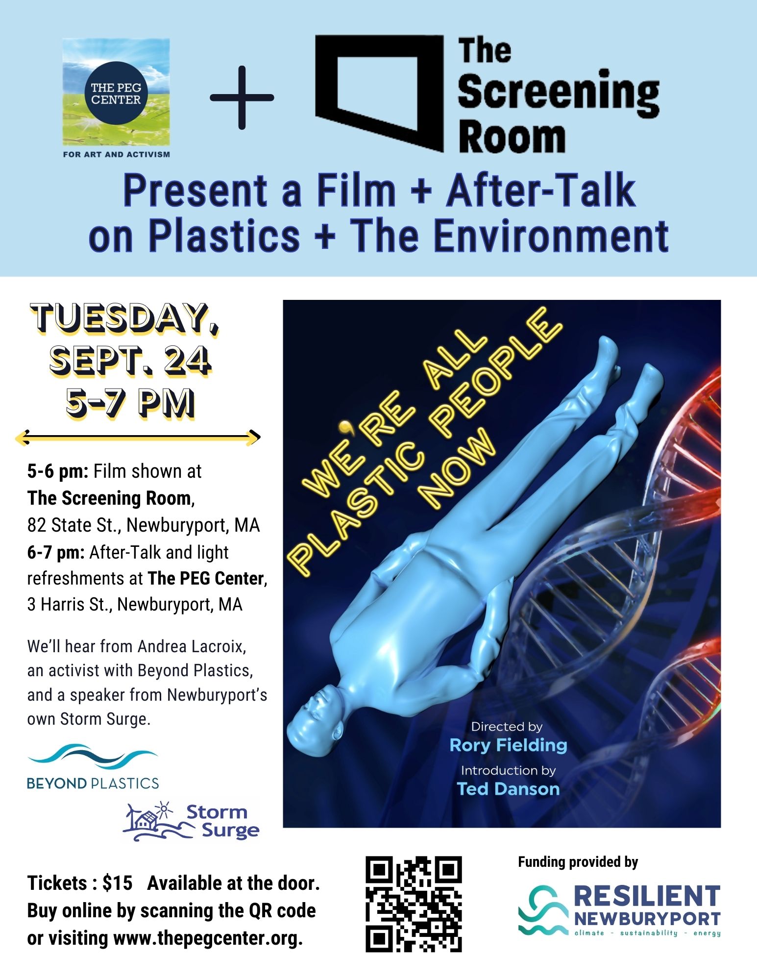 You are invited to view the film "We're All Plastic People Now" at The Screening Room and for a discussion afterwards a The PEG Center.