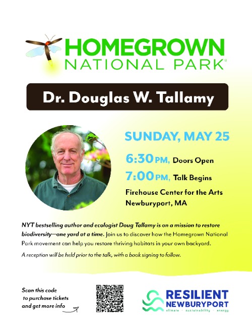 Summary: The Newburyport Resiliency Committee is thrilled to welcome Doug Tallamy for an exciting talk on his visionary concept of Homegrown National ParksⓇ (HNP). A reception will be held prior to the talk, and a book signing to follow. Tickets: https://firehouse.org/event/homegrown-25/